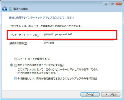 Windows での SSTP の設定方法をすでにご存じの場合は、以下の接続パラメータを入力して